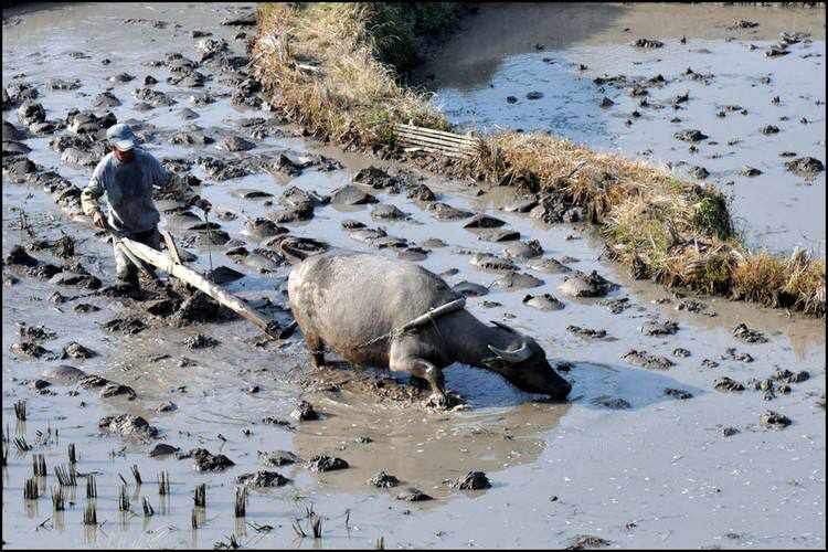 父亲早已经耕完一坵田回来搬化肥了,也是要喊我们起床干农活的,因为母亲在秧苗田里唠叨我们很久了也没有半点动静。姐姐把昨晚的剩饭炒好了,顺便把中午的白米粥也煮好了。父亲是很严厉的,他背着犁吆喝着老牛才进禾坪我们就被吓得赶紧溜下床往外跑,跟弟弟两个坐在微凉的石磙上“醒梦”,眼睛依然不争气的上下打架,身旁昨晚新打的稻草散发出一股清香,多想在上面再躺会儿啊。