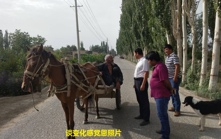 原来是今年92岁高龄的村民阿扎提·尼亚孜,老人驾着毛驴车,看起来身体依然硬朗,脸上总是带着笑容。赛麦提·伊斯马伊力同志急速的走到他面前,向他问好。“这会家里比较闲了,准备到村委会找你聊聊天,没想到这么巧就碰见你了,我今年92岁了,人也老了,在闲暇的时候总想跟你说说话。”阿扎提·尼亚孜老人说道。