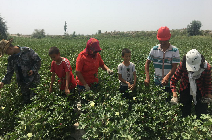 工作队队员一同两人顶着烈日当头的太阳深入田间地头帮助群众棉花打顶,为群众解决实际相应的困难。