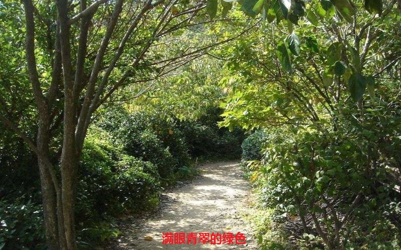 小径的两边,乔木灌木相间,是高矮不一的树木;期间还有茂密的各色杂草。两边树枝交叉,遮住了天空。小路大概有四米宽、走人不多,格外的幽静。草木不停的吸收二氧化碳、源源不断的释放着氧气,成就了一个天然的氧吧!