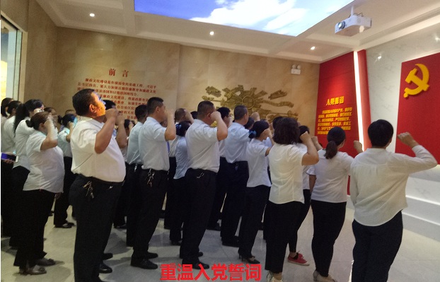 参观结束,全体人员高举右拳,面对鲜红的党旗重温了入党誓词。
