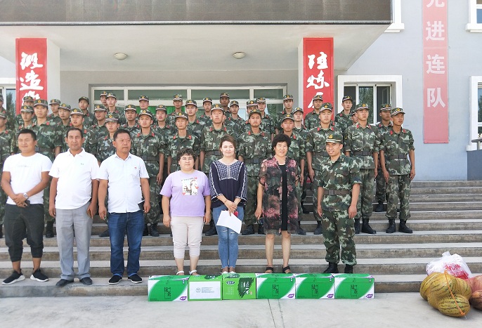 7月26日上午,“八一”建军节来临前夕,沙雅镇学苑社区王维花书记带领社区干部、“访惠聚”工作队来到沙雅县生产营,慰问长期奋斗在一线的官兵,并向他们致以节日的祝福。
