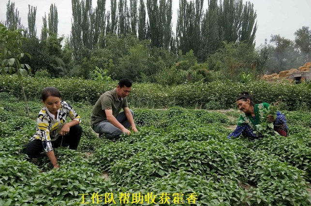 正在忙着“收割”藿香草的坎拜尔汗·吾守尔笑着说:“今天差不多收了近10公斤,这捆草晾干后能卖到300元。别小看这些草,它现在可是畅销国内外的,关键是它省工、省时、省肥料、省打药,经济效益比较好,明年我还要按照工作队的引导继续扩大规模。”