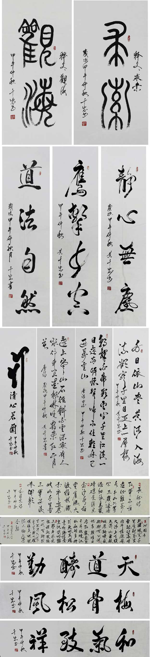 黄千忠自幼爱好广泛,虽身居农村,家境贫寒,但他始终以自强不息、勤奋不辍的人生哲理铭记在心。他一生中所从事的各项事业均小有成就,尤其对古玩、字画情有独钟。从青年时代就开始收藏。虽经历过种种磨难和艰辛,但始终不弃不馁。从收藏名人名家字画中得到熏陶和启发,于是勃发爱好书法艺术。在天命之年他才开始练笔学书法,从临摹到脱书,坚持不懈,日夜练笔,反复揣摩,与人砌磋,终于达到行草兼备,行如流水,草拟疾风,酣畅尽致,独具一体。许多书法爱好者、亲朋好友慕名而来索求墨宝留念,并请在各姓族谱题字,他毫不异墨,有求必送。近年来书法作品入选全国各类专业书画展(赛)并获奖,部分作品被台湾政要用艺术机构收藏,并多次接受多家报社、电视台记者采访,登报表彰,广受好评。例如纪念毛泽东诞辰120周年书法《长征诗》荣获全国“金奖”;北京六艺书画展书法荣获“金奖”。