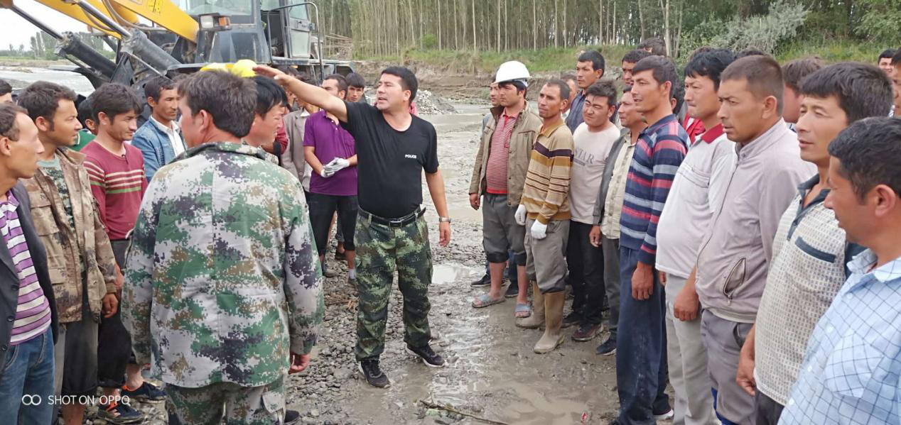 察尔齐镇巴扎村党支部书记卡哈尔·居曼同巴扎村抗洪志愿服务队一起开展防洪、抗洪工作(搬木头、扎木头、架三脚架等等),现场干群一心、团结一致、携手共进,为察尔齐镇这个大家庭的安全努力奋斗,这是民族团结之爱、民族团结之力!