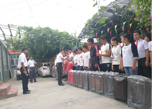 2018年7月30日上午,利用周一升国旗之际,阿热买里村二组村民艾海提·吾甫尔向17名品学兼优、生活贫困的返乡大学生捐赠了17个崭新的行李箱,他说:“大学生是我们村的希望,现在党和国家的政策越来越好,我们也想尽快搭乘实现小康生活的列车,我的文化水平不高,我的女儿现在也在上大学,我深感孩子们上学的艰辛,这次捐赠行李箱,就是希望他们能够好好学习,多学点先进的知识,建设我们的祖国,建设我们美丽的新疆,建设我们的家园”。卡利比努尔·艾海提说:谢谢我父亲对我们的鼓励,我门一定会牢记您和乡亲们对我们的期望,好好学习,建设我们美丽幸福的阿热买里村。