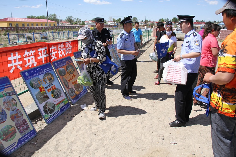 为确保暑运期间线路治安稳定,8月1日,锡林浩特铁路公安处查布嘎车站派组织民警深入管内天山口镇开展爱路护路宣传教育。