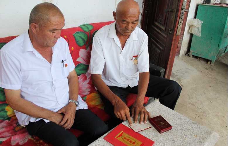 “我1975年征兵入伍,服役于中国人民解放军36125部队,1979年4月光荣的加入了中国共产党!……在中国共产党的领导下,如今我们的生活水平发生了翻天覆地的变化”退伍军人买买提·塔西给工作组及村两委班子讲述着当兵期间的点点滴滴。