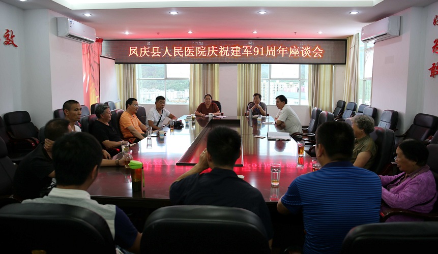 清风网讯(凤庆县人民医院 常宏英)为庆祝中国人民解放军建军91周年,8月1日下午,凤庆县人民医院党总支部、工会组织全院退休、在职复退转军人召开庆祝建军91周年座谈会。