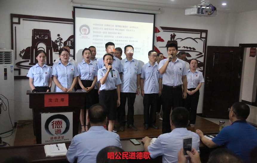 村两委干部、驻村工作队、部分帮扶干部共同唱起《公民道德歌》,一起来品悟道德的力量。高亢的歌声,唱出了激情、唱出了大家的心声,道德重如山,道德贵似金,倡导了人生道路上有德才能行。