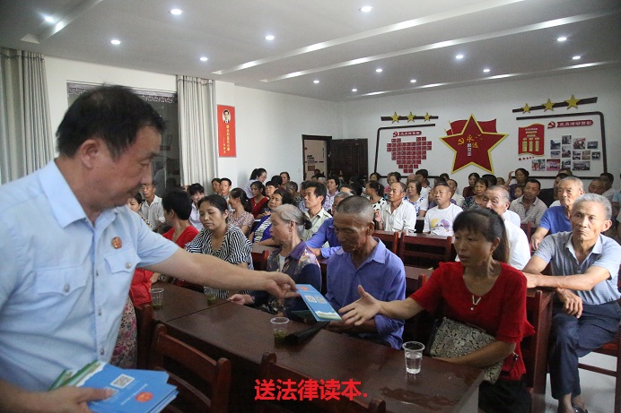 活动由英山县人民法院干部陈丹主持,英山县法院院长汪峰、方家咀乡党委书记段水平、鸡鸣河村党支部书记刘宗权分别讲话。