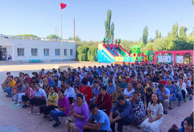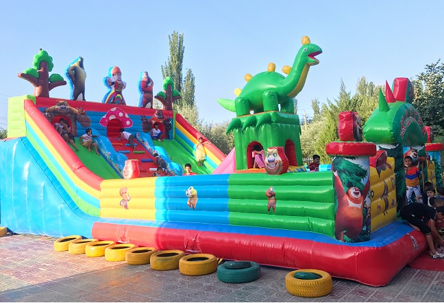 “自从你们置办了这个充气“城堡”后,孩子们有地方玩了,这个暑假孩子也开朗了许多,现在白天抓紧时间学习,晚上来社区玩,多亏你们这个“游乐园”呀,让我们省了不少心。”张大爷握着“访惠聚”队员尼加提·吉力力的手乐呵呵地说。
