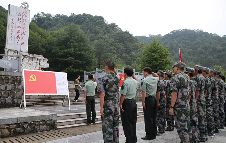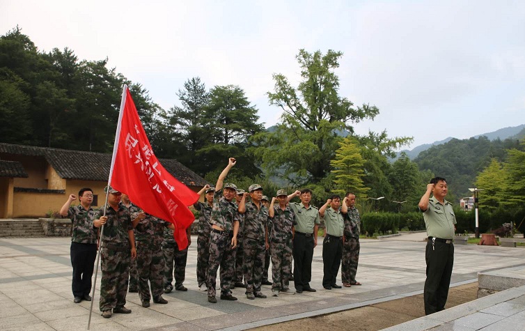 8月1日,为庆祝建军节,湖北英山县温泉镇人武部长方海波带领九龙口村民兵应急分队,来到相邻的安徽省岳西县红二十八军纪念馆,重温入党誓词,接受革命传统教育,牢记应急队员承担的责任与担当。