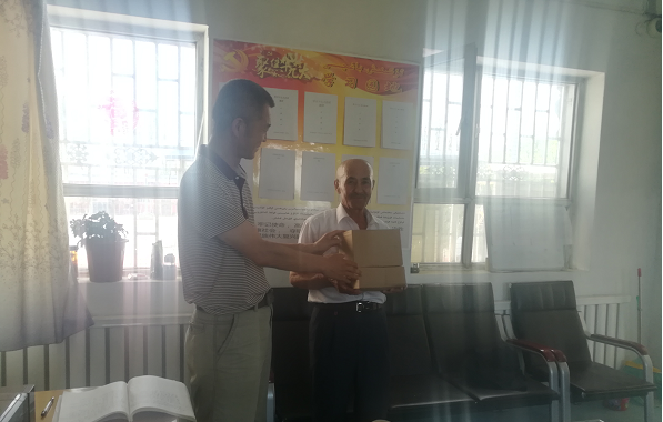 清风网讯:(通讯员 阿克苏地区农业局 张超) 八一建军节期间,沙雅县红旗镇布依提村工作队对村内唯一的一名老军人,阿布拉‧吾山进行了慰问,送去了政府的慰问金和工作队的礼品。阿布拉‧吾山1971年在独山子当兵,目前在乌鲁木齐市定居,这次因回乡办事,正巧碰上八一建军节,工作队和联合党支部了解到他是村内唯一的一名复员军人,请他来工作队,代表党和政府给他送了慰问金和礼品,表示了党和政府对老军人的关心关爱。