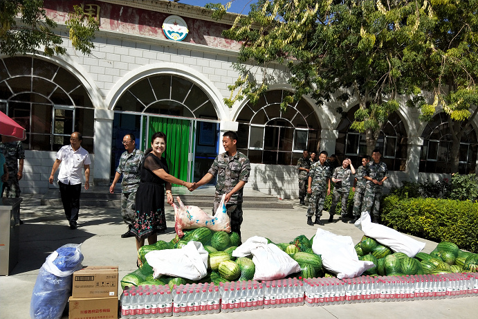 清风网讯(阿克苏市红桥街道 杜玉虎 阿克苏市政府办 原媛)七月三十日开始,截止八月二日,阿克苏市红桥街道组织辖区七个社区与驻社区的阿克苏市民政局、阿克苏市党校、阿克苏市政府办、阿克苏市卫生局、阿克苏市编制委员会办五个单位的七个访惠聚工作点,在八一来临之际,充分利用辖区的驻军、驻党政机关、驻防汇聚的资源,发挥党组织的政治优势,积极推动资源共享、优势互补、共驻共建、共同发展,最大限度地实现人力、物力、财力和其他社会资源的优化、整合及利用,形成资源共享、优势互补、共驻共建的良好态势,联结大区域一盘棋,以深化军民鱼水情、民族一家亲、党员干部用百姓心连心活动为内容。开展拉网式大慰问、大走访、大回访、大联欢、大宣讲,进入军营慰问部队官兵、看望老兵及其家属、为困难群众送温暖、军民联欢、民族一家亲亲戚互相走访、“响应国家号召,踊跃报名参军”、慰问一线职工、鱼水军民情与民族一家亲成员一起观礼升国旗、邀请军人进社区舞台做军事表演等活动,激发了辖区范围社会性的“尽公民责任”热情,掀起了“爱我中国潮流”。