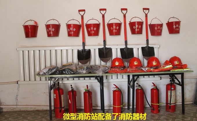 此次共投入资金4000余元建成村级微型消防站,并配备了灭火器、消防铲、消防水带、消防套服、对讲机等器材,并投入资金对专职队的营房进行了改造。