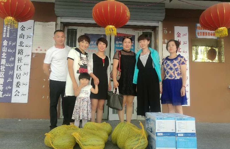 2018年8月3日下午,阿勒泰地区一中学总务部主任巴力恒,玛依努尔和库兰教师一行三人慰问金山北路社区社区干部。驻社区工作队队长贺英、社区党支部副书记王刁玉情迎接了她们。