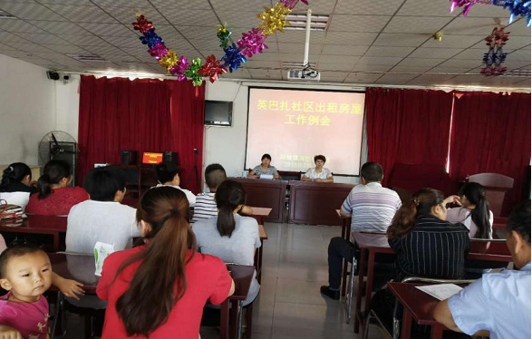 清风网讯(拜城县人民法院 乔新阳)为进一步加强出租房屋的安全防范,提高了辖区房屋出租人和承租人对出租房管理的重视程度,做好出租房屋和流动人口管理工作。7月31日下午,拜城县英巴扎社区召开出租房屋工作例会。社区干部、访惠聚工作队、辖区房屋出租人和承租人,共50余人参加此次会议。
