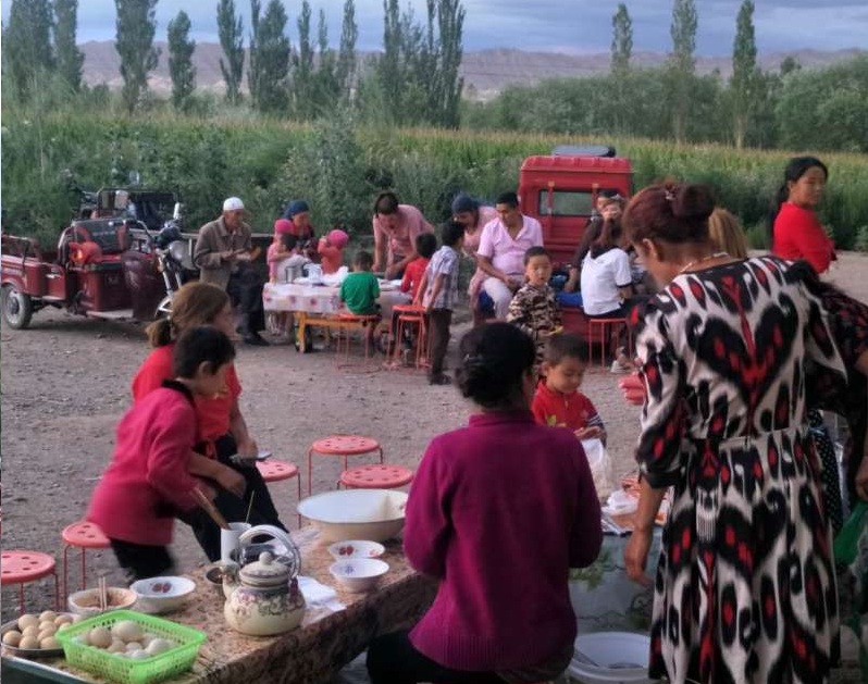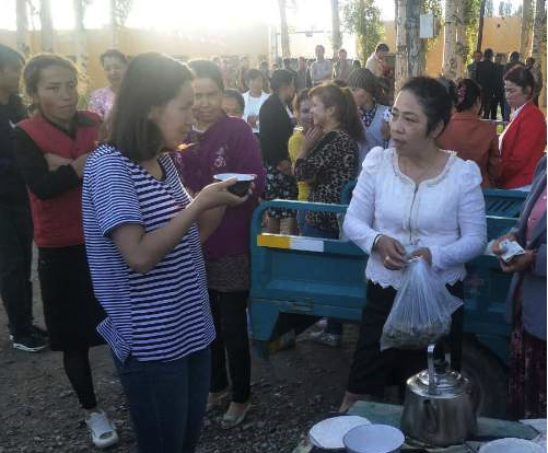 “今天早上七点我就过来了,自己在这起灶蒸包子,一早上卖掉200多个。晚上我又过来卖烧烤,吃东西的人很多,今天一天下来,我挣了500多元,纯利润大概也有300多元,如果没有早市、夜市,我在家也就是带孩子、洗衣做饭,挣不到钱,感谢村里给我们提供的场地”,贫困户其曼古丽·肉孜由衷的说道。