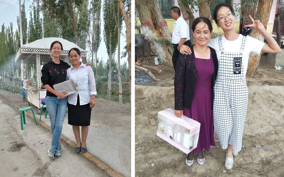毛宁和阿斯耶木姐姐的合影并送给姐姐的漂亮茶具