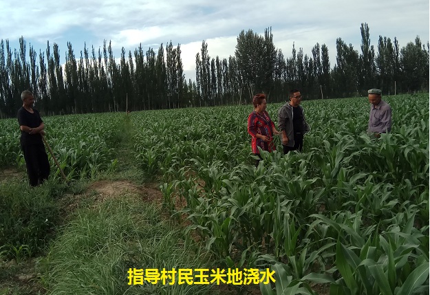 “吐鲁洪·买买提,马上要刮大风了,包谷地里少浇点水,水浇深了风会把包谷全刮倒的”工作队副队长刘新龙说。