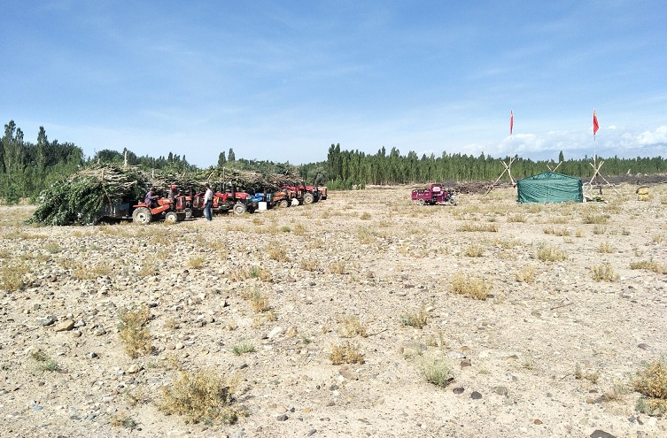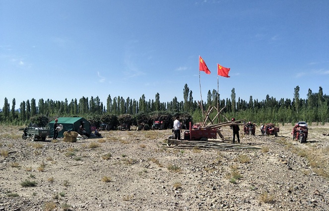 在炎炎烈日下,村民开着自己家的拖拉机、三轮摩托车、三轮电瓶车、拿着坎土曼、铁锹等工具来到防洪现场一起参与防洪。有负责搬运沙袋、有负责砍树枝的、有负责转运的、有负责竖立三脚架的、有负责压实树枝的,井然有序,一派热火朝天的劳动场景。村民们头顶烈日,渴了喝口水、累了擦把汗、树枝刮伤了包一包,汗水浸透的衣服,但没有人喊累、没有人喊苦、没有人抱怨,经过两天的奋战,修筑了一道260米长的防洪堤坝。