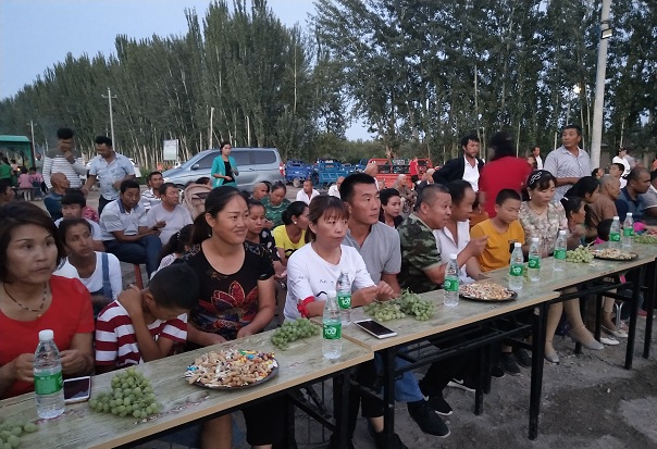 二是4个村民小组各出20道家常菜,村民自发带来葡萄、香梨、桃子等自产的水果,工作队和村委会各出资600元,购买了瓜子、花生、糖果,请来全体村民、结亲对象共庆“古尔邦节”。