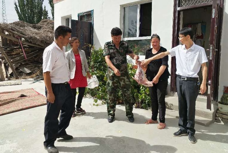 节前慰问送温暖,扶贫帮困暖人心。古尔邦节期间,工作队与村“两委” 一起积极开展走访慰问活动,为村里的老党员、困难群众和爱国宗教人士等共计9户村民送去了大米、面粉、清油和羊肉等节日慰问品,送去党的关怀和节日的祝福。在老支书牙森·依布拉依木家中,工作队队长段少远代表工作队和村“两委”感谢老人这些年为村里的经济发展、社会稳定作出的贡献,并希望老人保重身体,发挥余热。牙森·依布拉依木老人眼含热泪激动地说:“感谢党和政府以及工作队和村委会对我的关心和照顾,作为一名老党员老干部,我一定会继续发挥余热,不遗余力地支持村级建设和发展,将党的好政策宣传好,为社会稳定和民族团结出一份力。”