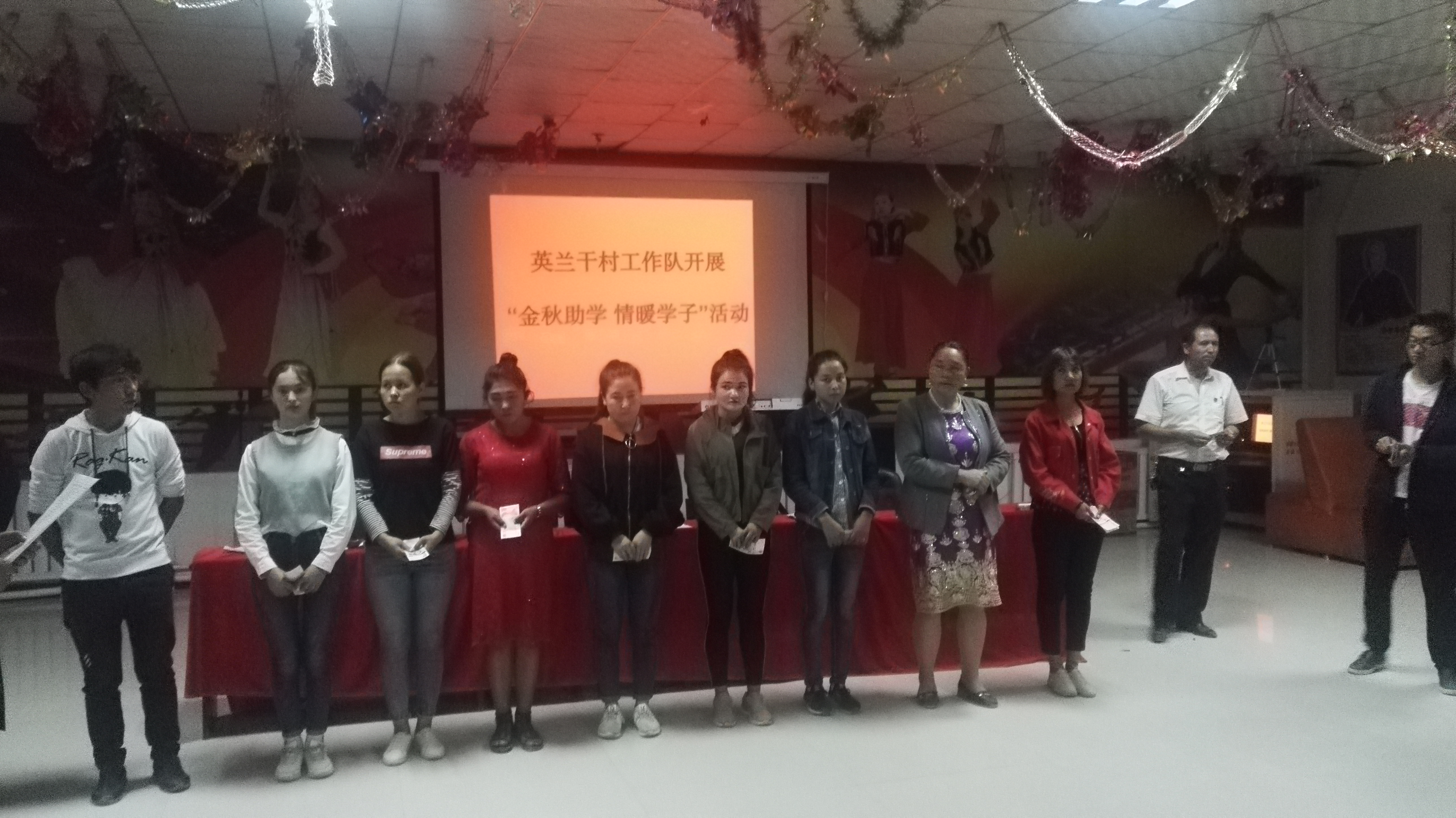 活动由英兰干村党支部书记玉山·吉力力主持。本次活动对2018年返乡学生参加暑期社会实践系列活动进行了总结;对27名在暑期积极参加村组织发声亮剑、村务实践和国家通用语言教学等活动中表现突出的学生表彰并奖励6550元。助学活动中,驻村工作队和村干部将爱心资金送到每位受赠学生手中,并鼓励家长们关心和支持孩子完成学业。