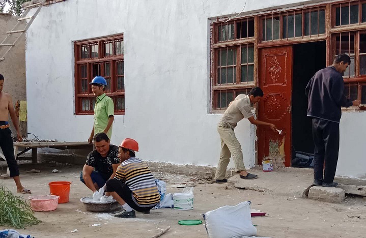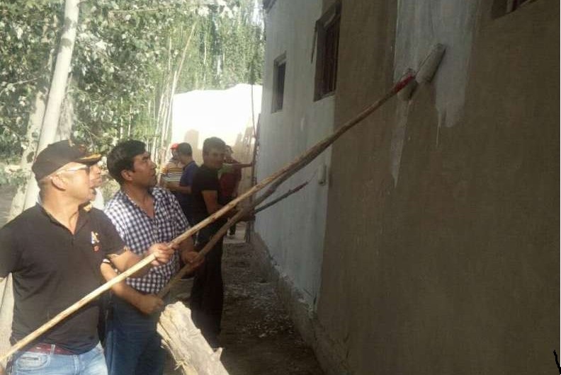 8月25日,阿瓦提县阿依巴格乡柯坪村“访惠聚”工作队组织全村党员干部、入党积极分子等35人给村民托合尼亚孜·阿吾提家粉刷了房屋内外墙面、门、窗,并对该户的电路进行了整理。