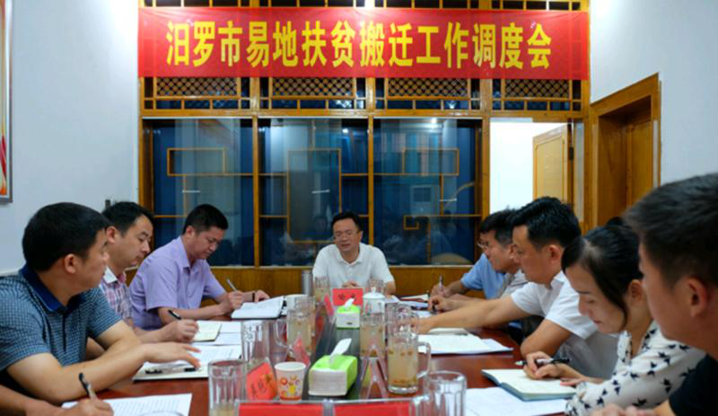在易地扶贫搬迁项目指挥部,喻文听取汨罗市易地扶贫搬迁工作情况汇报,调度易地搬迁工作。喻文充分肯定当前易地扶贫搬迁工作成效。他要求,进一步明确目标,加快工程进度,确保全市易地扶贫搬迁项目9月底前全面完成主体工程建设,11月底具备拎包入住的条件;对照问题清单,确保2016、2017年度易地搬迁问题整改到位。进一步明确责任,充分履职。项目指挥部负责大面指挥、协调、督促;省建三公司作为承建方要全力以赴保进度、保质量、保安全;乡镇要切实担负起主体责任,加强协调服务、宣传保障,把政策宣讲到位、情绪疏导到位,让易地扶贫