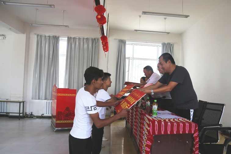 村第一书记康江伟说:“新疆地矿局第八地质大队作为后盾单位,将会一如既往的支持你们的学业,希望在座的每位学生都能珍惜这来之不易的学习机会,待学成归来,用你们的知识和智慧,为新疆发展和家乡建设添砖加瓦,贡献自己的力量。”