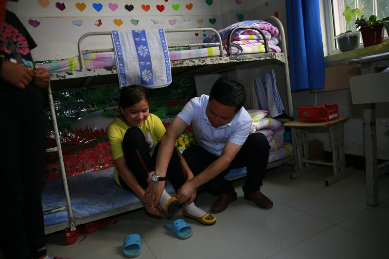 “叔叔阿姨们好!”社区干部和访惠聚工作队的队员们一进门,就受到了县福利院孩子们的热烈欢迎,尽管孩子们的发音不是那么标准,但却充满了热情和喜悦。在福利院工作人员的陪同下,与孩子们一起互动,并关切地询问他们的名字和年龄。随后为孩子们亲自穿上了新鞋,同孩子一起度过一个欢快的古尔邦节。