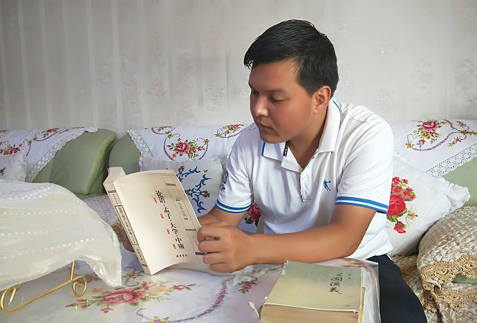 在跟艾克拜尔·罗合曼聊天过程中了解到他的父亲罗合曼·乃买提从小都是在汉校上的学,受父亲的影响他也是一名民考汉学生。艾克拜尔·罗合曼说:“我从小喜欢阅读有关传统文化方面的书籍,但是上学的时候一直忙于学业没有时间看自己喜欢的书,现在我大学毕业了还没有去上班,趁着这段空闲时间我要把《论语·孟子·大学·中庸》、《三国演义》等文学好好地拜读一遍。作为新时代青少年,我们应当主动学习国学知识,积极参加社会实践,在行动中培养对我国优秀的传统文化的情感。”