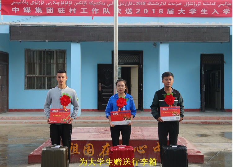 清风网讯(中煤能源新疆分公司 王广红 李德成)8月26日,阿克苏地区阿瓦提县阿依巴格乡托万克艾来木库都克村村委会内响起一阵热烈的掌声,3名胸带大红花,手捧录取通知书的青年,高高兴兴地领取了行李箱,并和工作队队长、村委会书记合影留念。原来这是中煤集团驻村工作队为该村2018届大学生举行欢送仪式。