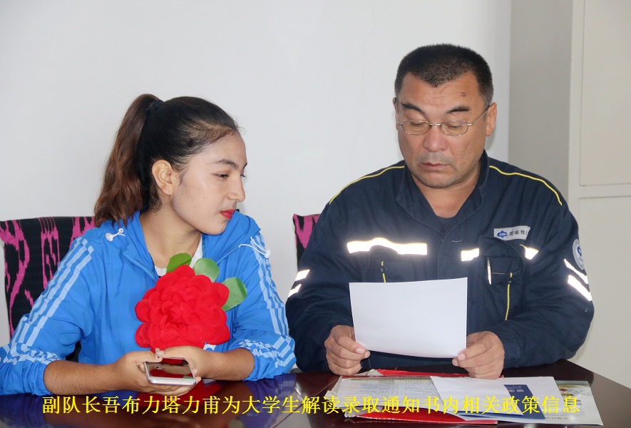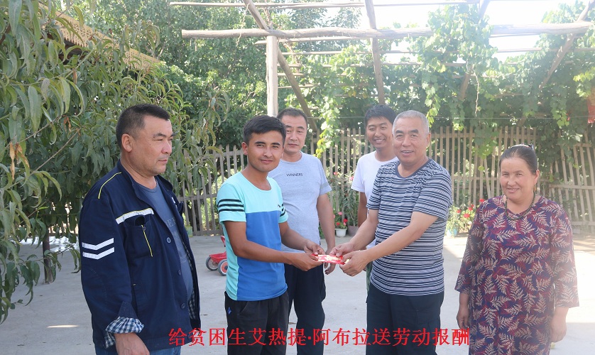 艾热提·阿布拉是一名贫困学生,也是村干部眼中的好老师。他刚参加完高考,就主动找到工作队,强烈要求到村委会任国语培训班老师,帮助村干部学国语。在他的带领下,国语培训班学员学习热情高涨,水平提高了不少。为鼓励他继续好好学习,驻村工作队主动到他家中送去“劳动报酬”2000元,解决上学难的问题,鼓励他好好学习,学有所成。