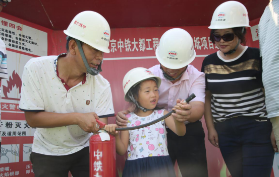 中铁十八局集团大都公司宝坻项目部探亲的家属、孩子和新学员传授消防知识