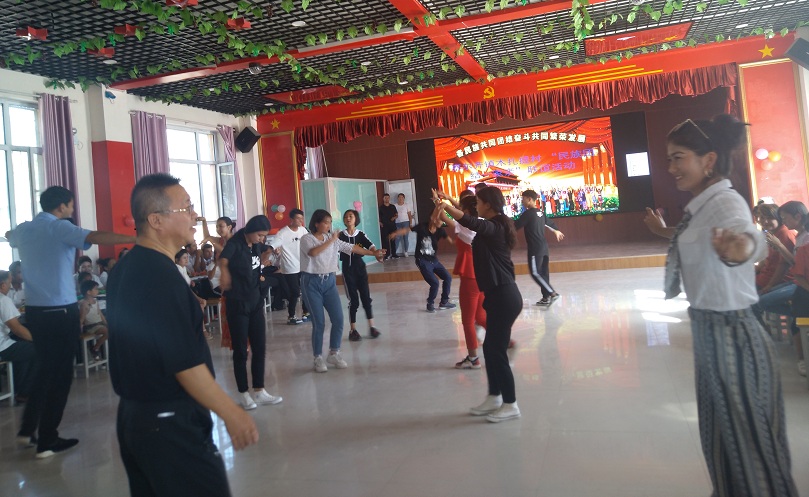 首先,公司领导给自己的亲戚发放慰问品,慰问品是牙刷、牙膏、毛巾等,引导村民们提倡健康、文明的生活方式。发放完毕,精彩的节目开始,传统的维吾尔族舞蹈与现代舞蹈相互映衬,甜美的歌声,优美的动作,每一个人陶醉在精彩的表演中,节目最后以大家熟悉的麦西来甫舞蹈结束,在场的公司领导与员工、干部、群众一起跳舞,气氛融洽,乐在其中。