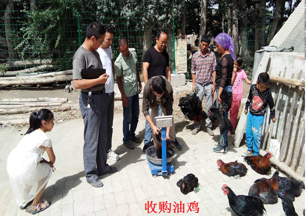 已经过去了四个多月,第一批发放的拜城油鸡已经基本长成,农民都害怕卖不出去,积极性出现动摇,部分农民开始出现投入不足、饲养管理不到位等情况。地区畜牧技术推广中心下沉专业技术人员看到这种情况后及时联系拜城县牧村油鸡养殖合作社来村里上门收购达到体重标准的油鸡。经过工作队和下沉干部的认真组织,合作社人员到养鸡户家门口开展收购工作,标准为公鸡1.8kg以上、母鸡1.5kg以上,每公斤32元现金收购。