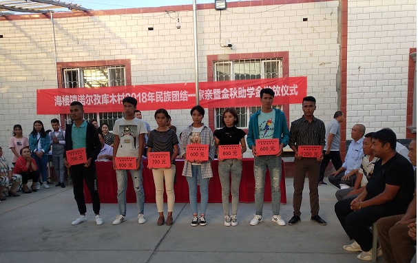 活动中,工作队为村里15名新考入大学的学生和30名贫困学生每人发放了200元至1200元不等的助学金,鼓励他们珍惜来之不易的机会,保持谦虚的学习态度,爱护民族团结,同时也希望他们能在更高的学府深造,学有所成,用真实才干回报家乡,回报社会。