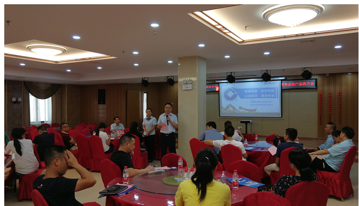 桥东支行公司客户经理胡道远为参会人员详细介绍了建行普惠金融的各类产品,重点推介了线上产品“小微快贷”以及线下四种大数据产品。