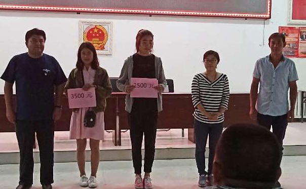 将此次助学金根据学费的高低分别送到了热则古丽和热娜古丽手中,她们两高兴地说:“今后将怀着一颗感恩之心,一定努力学习,绝不辜负父老乡亲们的关怀、帮助和期望,用优异的成绩回报社会各界的关爱,以实际行动感染他人、传递爱心、回报社会,成为对社会有用的人。