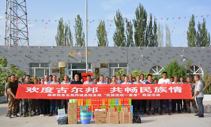 清风网讯 (拜城县税务局 吴贝尔) 美好的歌声唱出节日的祝福,欢快的舞步跳出节日的喜庆……随着9月的到来,古尔邦节也进入了尾声,大家都摩拳擦掌准备着秋季的劳作。新疆拜城县税务局驻亚吐尔乡帕什塔其村“访惠聚”工作队也没有闲着,紧接着之前的走访慰问,节日礼物,同村里的亲人开展了“讲文明,树新风”的联谊活动。