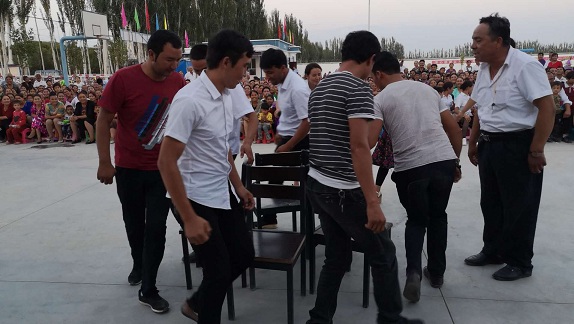 这边激烈的抢凳子活动也在如火如荼的进行着,村民阿里木·阿不力孜这样描述抢凳子的特点,这一项比赛中需要10人参与抢九张凳子,没有抢到凳子者淘汰出局,没进行一轮撤掉一张凳子,以最后抢到凳子者胜出。“一轮比一轮精彩、刺激,很好玩、很有趣。”参加完抢凳子活动的古丽克孜·吾斯曼感叹道。