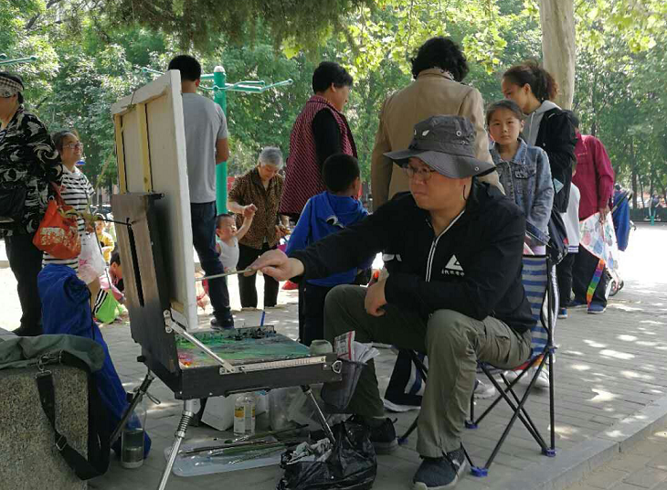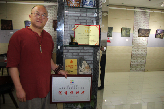 为了实现自己的心愿,步兵画家创办培训班、画校,常年不断地培训青少年学员,与学生们一起,进行艺术创作,很好地宣传了泰山文化、泰安历史,成绩斐然,受到各级组织奖励,赢得各级领导和社会各界称赞。实地采访了步兵画家,他的心声与行动、成效,令人感动,祝愿他百尺竿头,更进一步,在新时代留下泰山、泰安乡愁的圆梦路上阔步前进!