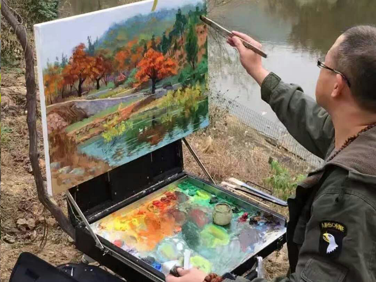 步兵画家及学员在野外写生