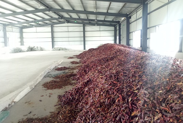 随着辣椒逐渐成熟,合作社的加工设备已投入正常使用。该合作社以全村148户贫困户户均出资1亩耕地的形式入股,并吸纳21名贫困人口在合作社务工。经初步测算,该村1000亩辣椒可年产鲜椒2750吨,经晾晒后可物理风干成400吨干椒,仅加工一项,辣椒合作社可获利100万元,产品附加值可提升10倍以上。