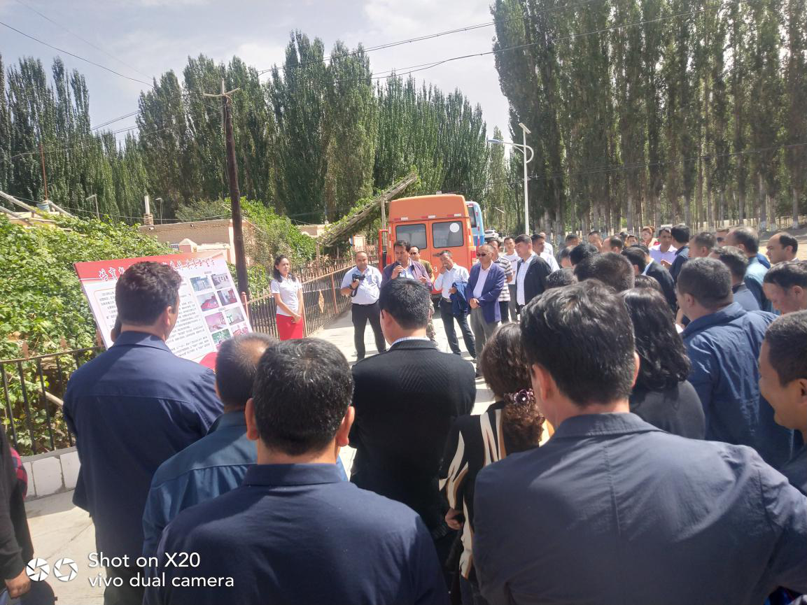 本次现场会分为现场参观和座谈交流两个阶段。与会人员先后在喀依库拉克村现场参观了扶贫养殖合作社、扶贫异地搬迁情况,实地观摩了博孜村冬播、秋季林果业管理、制作青贮饲料,阿克布隆村秋季植树、兰干村美丽庭院、三改工作。