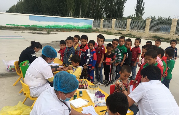 为了此次体检质量高效精准,驻村工作队特别邀请了托普鲁克乡卫生院儿科、眼科、中医科专家参加此次体检活动。此次体检主要对幼儿园学生的身高体重、视力、口腔五官、咽部、心肺、脊柱、外科、血常规等方面进行检查,掌握幼儿生长整体发育情况,并将体检资料建立儿童健康成长档案,进行信息化管理。