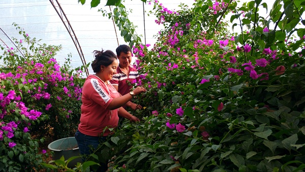 经济技术开发区驻村工作队队长刘仁爱说“ 我们多方招纳贤士,最终将14个温室大棚的花卉交给有培育养殖经验的何新华来投资管理,工作队在繁育期多次聘请花卉养殖专家前来指导,目前这里的三角梅品种达到了30多种,已成为南疆最大的三角梅繁育基地,花卉基地的建成与发展已带动周边农民30多人就业、脱贫、致富”。